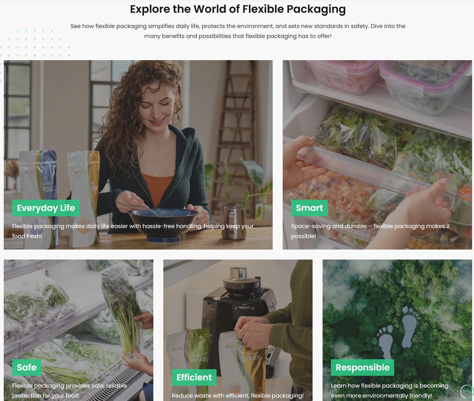 - Responsible: The website explains how modern flexible packaging contributes to the circular economy by improving recycling opportunities and promoting the use of renewable materials. It also highlights ongoing innovations in the industry that are further advancing sustainable packaging solutions.