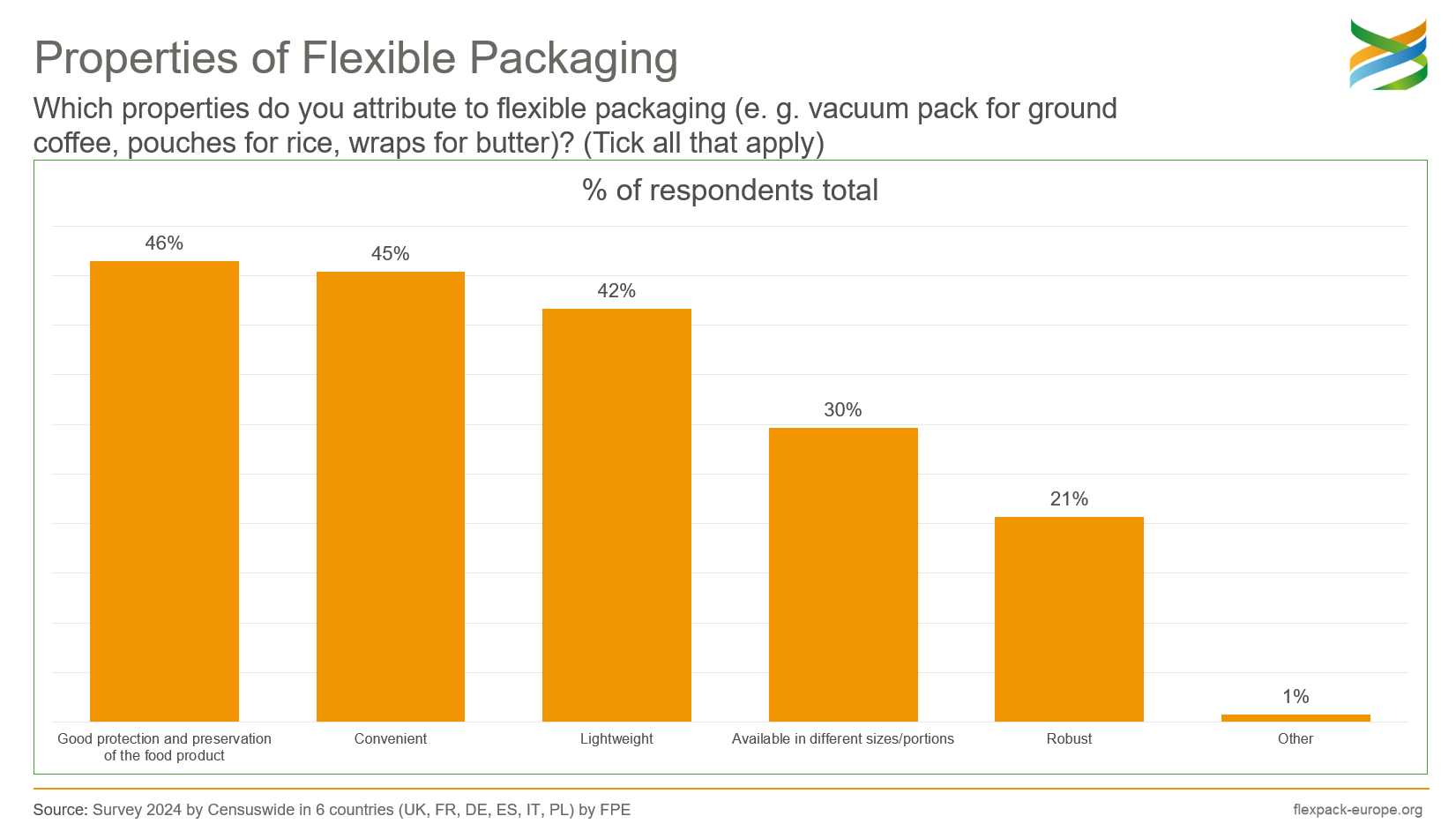 The results of a recent consumer survey on the use of flexible packaging commissioned by Flexible Packaging Europe (FPE) reveal some interesting results. The representative survey was conducted by the global market research institute Censuswide in the six major European markets of France, Germany, Italy, Spain, Great Britain and Poland in 2024 and recorded the responses of a total of 6,000 consumers.